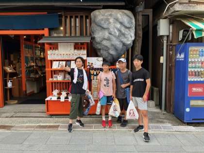 金比羅宮の参道で買い物をしました。何を買うか悩む人が多かったです。