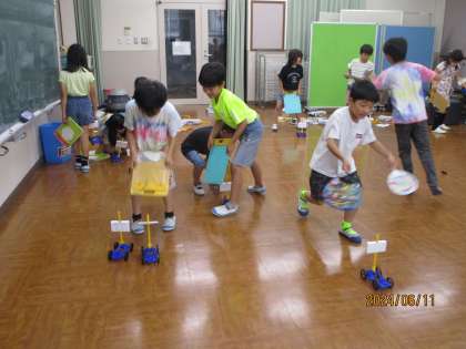 「先生、もっと強い風でやってみたい!家から扇風機持ってくるわ!」
