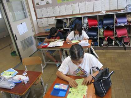 家庭科の裁縫では、「玉結び・玉止め」の練習をしています。前の時間は、玉結びがうまくいかず、糸が布を通ってしまう子も多かったですが、今回の練習でほとんどの子ができるようになりました。次は縫い方の練習をしていきます。