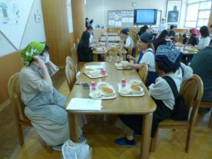 次に,ランチルームで実際に給食を食べました。子どもたちが食べるものと同じものを食べました。保護者の方からも大好評でした。ご参加ありがとうございました。