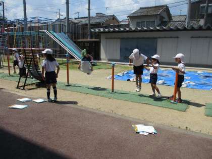 いろいろな技を練習しました。「上がり技」「回転技」「下り技」の中から、自分が練習する技を決めて練習をしました。暑い時期になりますが、休み時間やお休みの日にも、少しずつ練習してできる技が増えるといいですね。