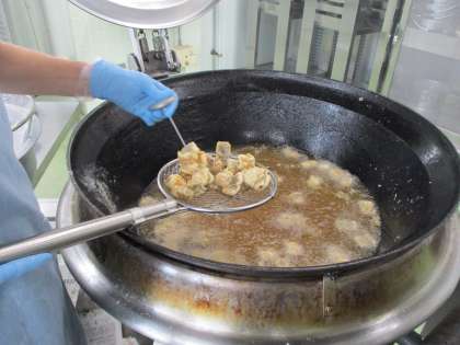 祇園祭は,ちょうどはもが旬をむかえるころに行われるので「はも祭」とも言われ,はもを使った料理は祇園祭にはかかせません。給食では【はも】を油でカラッと揚げています。
