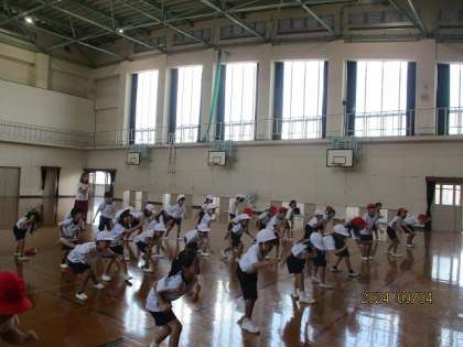 1・2年生合同で、リズム遊びをしています。曲に合わせてダンスをしています。運動会で披露したいと思って、みんなの力を出し切ろう!と頑張っています!