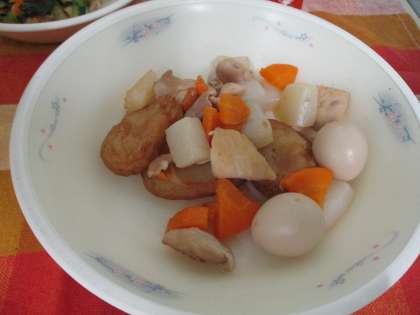 今日の『平天とこんにゃくの煮つけ』は,うずら卵が入りました。意外と子どもたちも食べてくれる献立です。