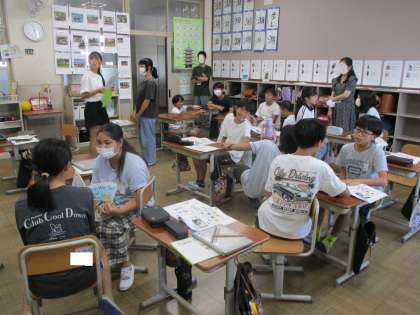 参観3時間目は外国語でした。夏休みの出来事を伝える言い方はすでに学習していますが、その話題に加えて、感じたこと(きれいだった 楽しかった 美味しかった など)などの感想を付けて伝えられるように練習しました。