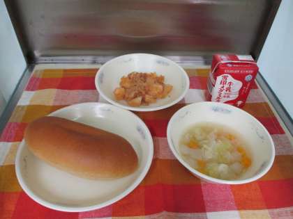 『豚肉のケチャップ煮』も『野菜のスープ煮』も食べやすいので,どのグループも時間内に完食でした!楽しく食べられたようで良かったです。