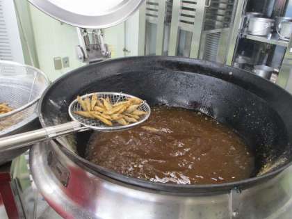 今日は新献立の『小あじのこはくあげ』でした。小あじをしょうが・料理酒・しょうゆにつけこんで下味をつけてから,片栗粉と米粉をまぶして油で揚げて作りました。京都産の【小あじ】を使用した,地産地消の献立です。小あじは頭から骨まで食べられることができ,骨や歯を作る「カルシウム」を多く取ることができる食品です。「新献立どうやった?」と聞くと「美味しかった〜」と言う声が多い中,苦手な子どもは1つ食べるのに苦戦していました。