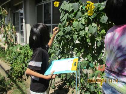 1学期から育てていた、ヘチマを観察しました。