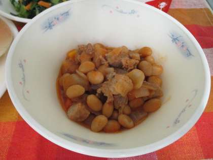 『ポークビーンズ』にはトマトケチャップを使っています。コトコトじっくり煮込むことで甘味が出てきます。【トマト】にはビタミンCやリコピンが含まれ,体の調子を整える働きがあります。