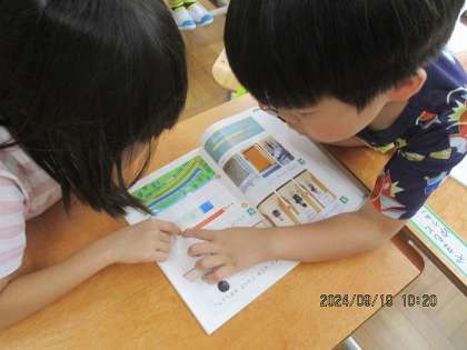 紙テープではないものでどうやって長さを比べようか・・・?机のたてと横の長さを比べるにはどうすればよいかを考えました。手のいくつ分、マスのいくつ分、列車の何両分などいろいろなもののいくつ分で長さを比べることができました。