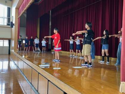 運動会の応援練習の様子です。応援団長・副団長は6年生が務めます。全校の先頭に立って大きな声を出す姿はかっこいいです。