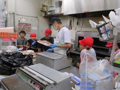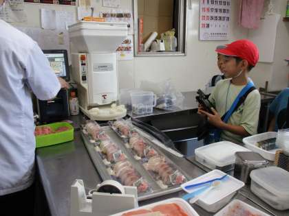 売り場だけでなく、商品を加工している場所や、お店の裏に商品をストックしている場所、お肉や魚を切って、パックに美しく並べている様子などを見学させてもらいました。