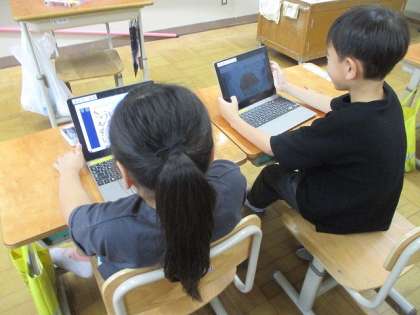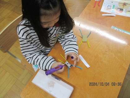 図画工作科で「すきまのすきなすきまちゃん」に取り組みました。隙間テープや段ボールを体にして、モールで手や足を作り、マジックペンで顔などを描きました。「見て見て〜!ここで昼寝してる」「ここにぶら下がったよ」「ここから少し顔を出したよ」など大盛り上がりでした!最後にお気に入りの一枚の写真をロイロノートの提出箱に提出して、みんなで見て楽しみました。