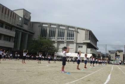 演技の様子です。本番を迎えるまで、体育の時間に1年生と一緒に心をそろえて学習を進めてきました。