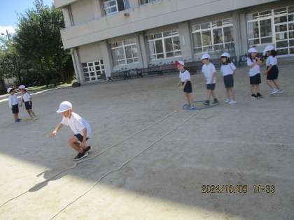 その後は、川とびあそびをしました。自分たちで川の太さを考えてとび方も工夫しました。