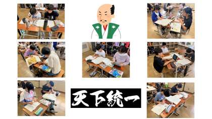 歴史の学習は戦国時代に入りました。戦国大名 織田信長が天下統一を目指すためにどのようなことをしたのか、資料をもとに調べました。ペアで「これが信長のねらいだ!」と活発に調べる姿がありました。