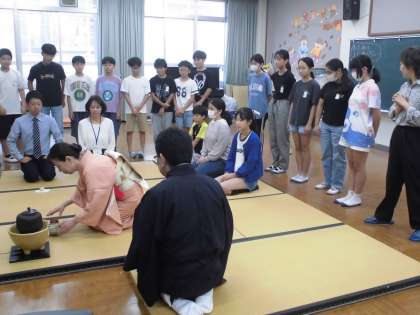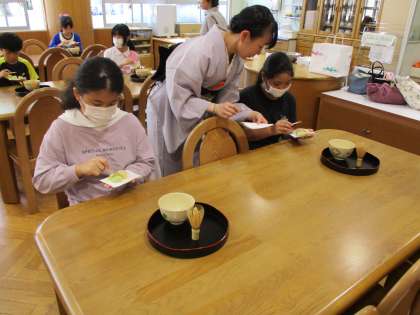 外部の先生をお招きして茶道体験をしました。お茶を立てることも、いただくことも初めてだったようで素敵な経験になりました。
