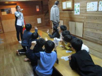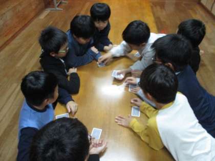 男子の宿泊棟の様子です。早々に就寝の準備を終え,就寝の時刻までトランプをしました。