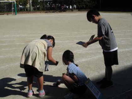グループでそれぞれ、「測る人」「記録する人」と