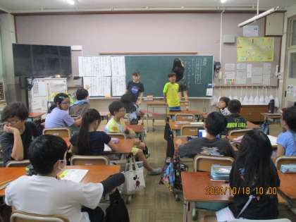 司会者・記録者・提案者・タイマー係に分かれ、議題に沿ってクラスみんなで話し合いをしました。