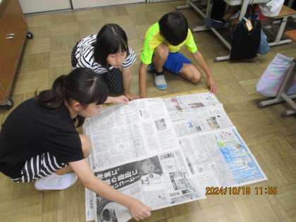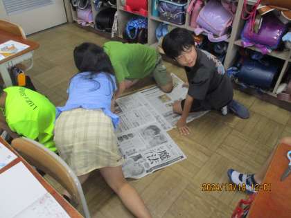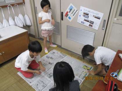 1平方メートルの大きさは実際にどれくらいなのかを新聞紙を使って、大きさを確認しました。予想以上に大きく、子どもたちも驚いていました。
