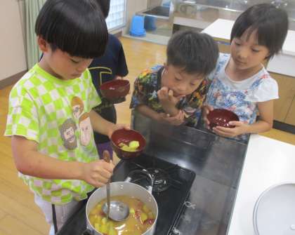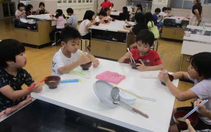 生活科の学習で収穫したサツマイモを、味噌汁にしていただきました。