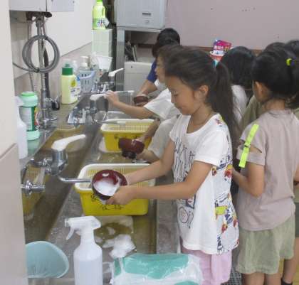 「やっぱり、自分たちで育てたサツマイモは、一味違うな〜。」と声があがっていました。おいしくいただいた後は、お片付けも自分たちでしっかりやりました。