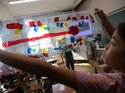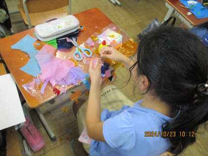 図画工作科の学習で「光のさしこむ絵」を工作しています。