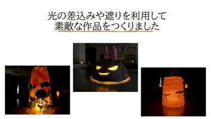 図画工作では光を使った作品を作りました。光の差込みや遮りをうまく利用すると、作品1つ1つちがった味をだし、おもしろくなります。