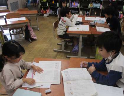 国語の学習では、「紙コップ花火の作り方」の文章を読んで、説明に大事な言葉や文をみんなで探しました。