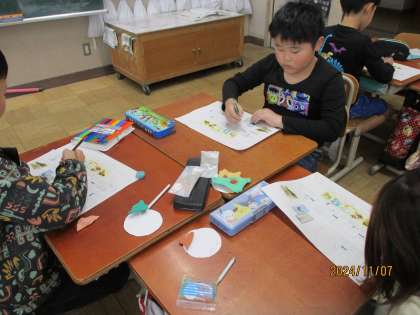 おたべ工場への見学の学習の前に、1時間で1万個もできるおたべがどうやってできるか予想をしました。