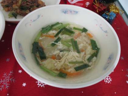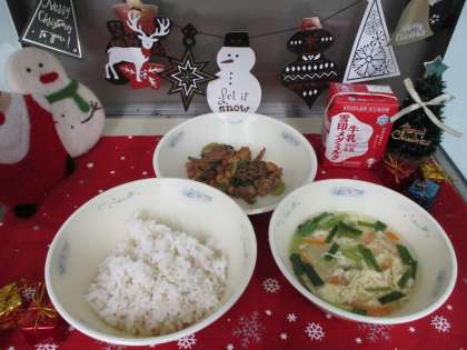 今日は新献立の『酸辣湯(サンラータン)』が登場しました。『酸辣湯』は,中国料理のひとつです。肉や野菜などを入れ,酢の酸味と,唐辛子や胡椒の辛味と香りを効かせたスープです。給食では,鶏肉・たまねぎ・にら・たまごなどを入れ,酸味には米酢,辛味には胡椒を使っています。最後にごま油,酢を入れて香りよく仕上げました。子ども達にも「美味しかった〜」と大好評でした。