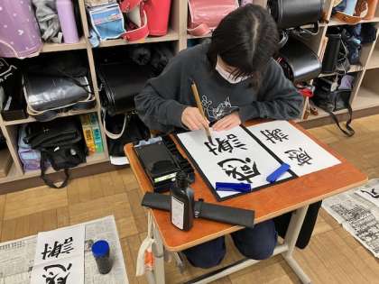 書写の学習では、好きな文字・好きな言葉を書きました。お気に入りの言葉ということもあり、気持ちを込めて書けました。