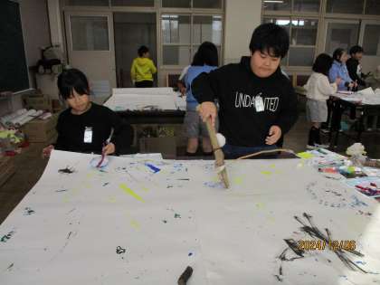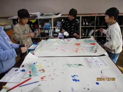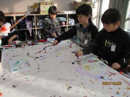 みんなで、出来上がったペンを使って、大きな模造紙で絵を描いてみました。