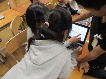 「えからうまれるおんがく」で、絵や擬音語から楽器の音を探して班で音をつないで音楽を作っていきました。タブレットを使い、どの組み合わせにしようか、だれが最初に鳴らすか・・・など相談しながら楽譜をつくっていきました。次にみんなで発表して聴き合いたいと思います!