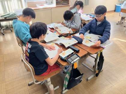 一人で進んでまとめたい人もいれば、グループで協力しながら調べる人もいます。話すことで見落としていることに気が付き、共有することができます。