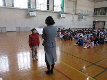 全校のみんなの前で表彰されて,とっても嬉しそうでした。