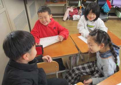 始業式の後、教室でお話タイムをとり、冬休みのことを交流しました。