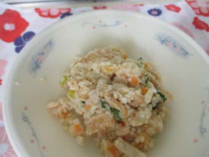 『おから』は京都で昔から食べられてきたおかずです。包丁で切らなくても調理できることから「切らず」とも言われています。出汁の旨味がたっぷりしみ込んだ,しっとりとした食感です。煮干しから出汁をとりました。6年生が「おから,美味しかった」と言ってくれました。