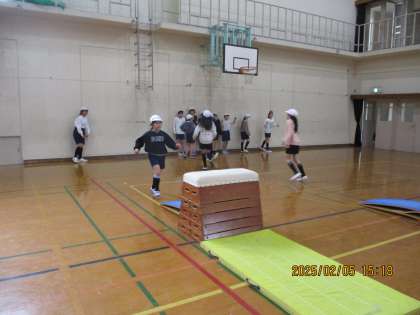 体育科の学習でとび箱をしています。