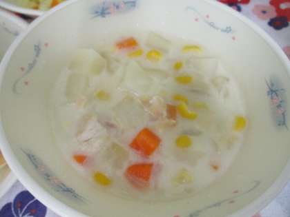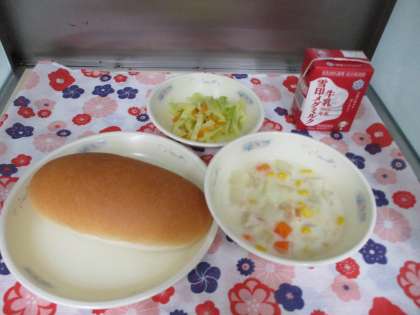 今日は『コーンのクリームシチュー』でした。とても寒い日だったので温まる献立でよかったです。規定の量よりもたくさんあったのですが,どの学年も完食で返却されました!