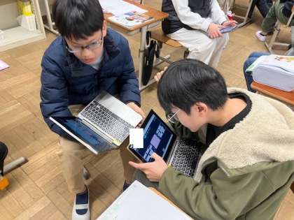 思考ツールに自分の考えを書き、交流する姿は素敵でした。