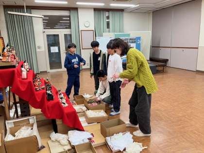 校内に飾られていたひな人形です。先生が片付けを誘ってくださり、数人で片づけました。