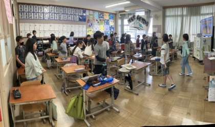 1年生を迎える会に向けて練習をしています。自分たちで発表する内容や構成を考えて進めています。