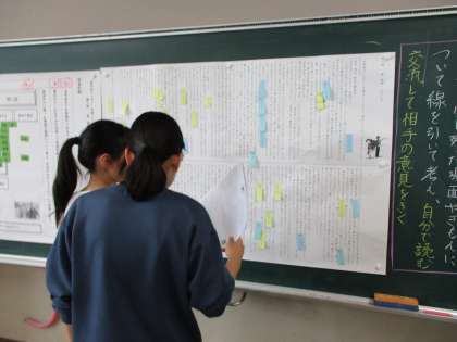 今日は物語を読んで疑問に思ったところや心に残ったところについて、友達と交流しました。友達が思ったことに「なるほど〜!」と反応しながら交流していました。