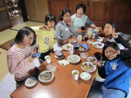5年生の長期宿泊学習,2日目午後から花背・別所地域での民泊。七輪で魚を焼いたり,ご飯を釜で炊いたり,地鶏や山菜,とれたて新鮮野菜で食事作りをいっしょにしたり,どこのご家庭でも工夫して地域らしさを体験させてくださいました。帰ってきた子ども達は,「民泊は楽しかったです。」と口々に報告してくれました。受け入れてくださった皆様,ほんとうにありがとうございました。
