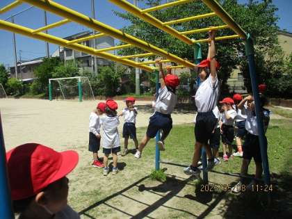今週から「ゆうぐあそび」の学習に入りました。三点指示などの約束を確認して、本当にできるかやってみました。どの子も安全に気を付けて行動できていたのが立派でした。
