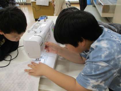 家庭科の学習では、ミシンを使ってのナップザックの製作が始まりました。しるしの通りにまっずぐ縫うことができるのか不安な子もいましたが、今日の授業では無事に「わき」の部分を縫うことができました。これからもお互いに教え合い、助け合いながら進めていってほしいです。
