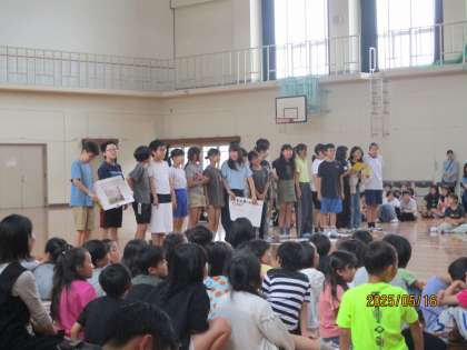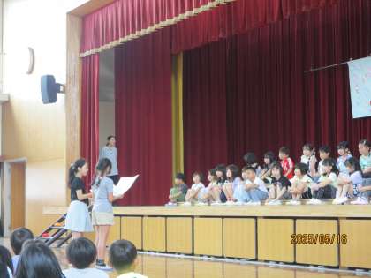 1年生を迎える会があり、6年生は出し物で「南大内小学校クイズ」をしました。入ったばかりの1年生にもっと学校のことを知ってもらいたい!という思いで、全8問のクイズを考えて用意してきました。本番は1年生に楽しんでもらうことができ、最高学年としての力を発揮できました。