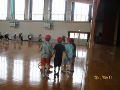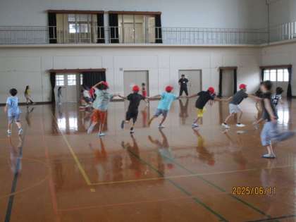 今日のみんな遊びは手つなぎ鬼でした。2人の鬼から始まり、どんどん長くなっていく鬼の列がなかなかのインパクトでしたが、体育館で楽しく遊べました。また次回も楽しみですね!